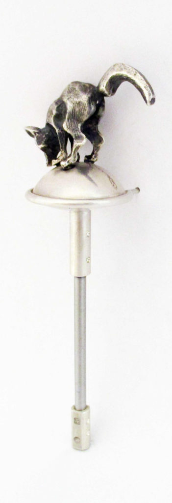 Az ürítő pózba mintázott róka alatt, a végeredményt a mokume folt jelképezi.