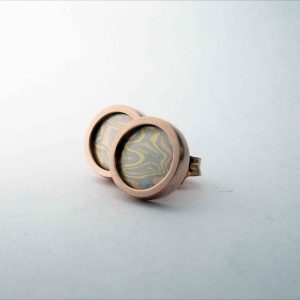 Ezüst-palládium mokume bedugós fülbevalópár 1 réteg vörösarannyal