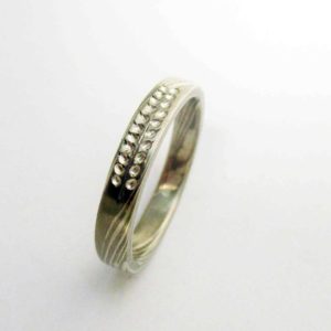 Palládiumos-fehérarany és ezüst mokume gane gyűrű
