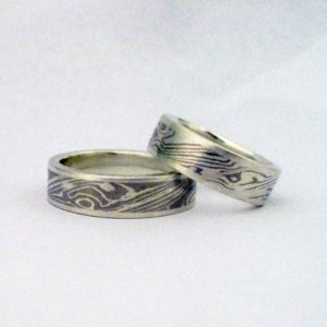 “Három fehér” faerezet mintás mokume gane karikagyűrűpár / jgyp0178