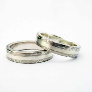 Ezüst-fehérarany mokume gane karikagyűrűpár / jgyp0185